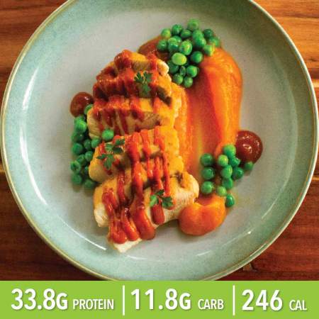 Chef made BBQ Sauce Seasoned Chicken Breast, Pumpkin Mash and Peas quantity
