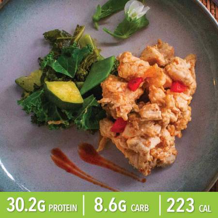Chicken Breast with Satay Sauce and Sauteed Greens Protein quantity