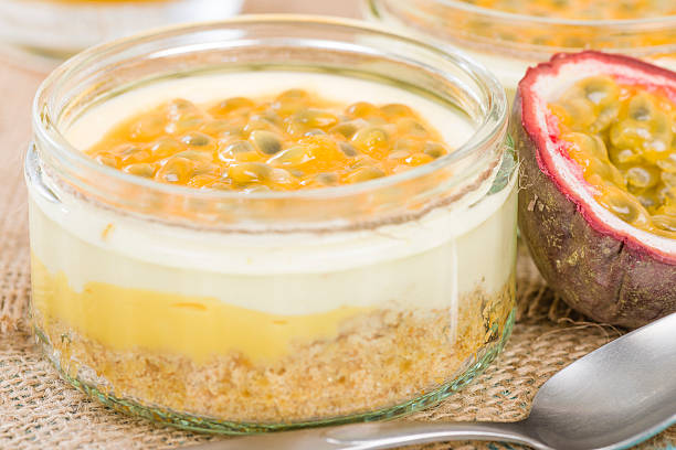 Protein Cheesecake with Mango and Passionfruit Coulis Protein